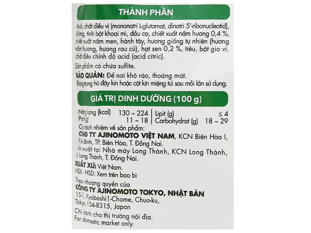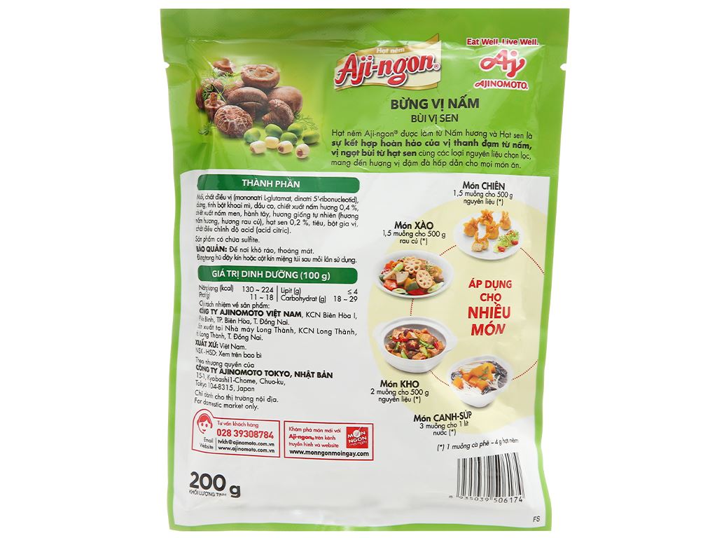 ម្សៅស៊ុប Aji-ngon រសជាតិផ្សិត និងគ្រាប់ឈូក 200g គឺជាគ្រឿងទេសបែបបួស ដែលផលិតពីផ្សិត (nấm hương) និងគ្រាប់ឈូក រួមជាមួយគ្រឿងទេសផ្សេងៗ។