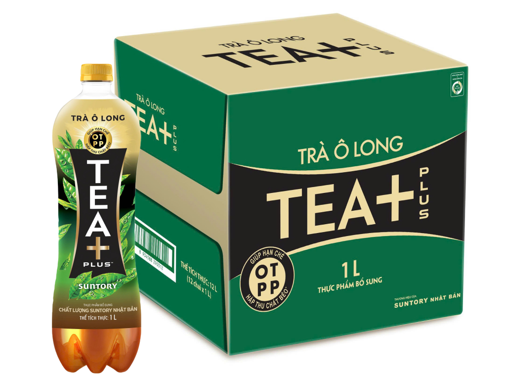 Tea+ is a bottled oolong tea brand of Suntory PepsiCo Vietnam, featuring various product lines such as sugar-free oolong, lemon oolong, and tropical peach oolong, catering to diverse consumer tastes. The product is manufactured using Japanese Suntory technology, made from 100% real oolong tea leaves through fermentation and strict quality control processes.