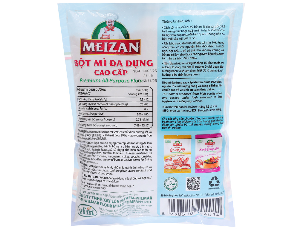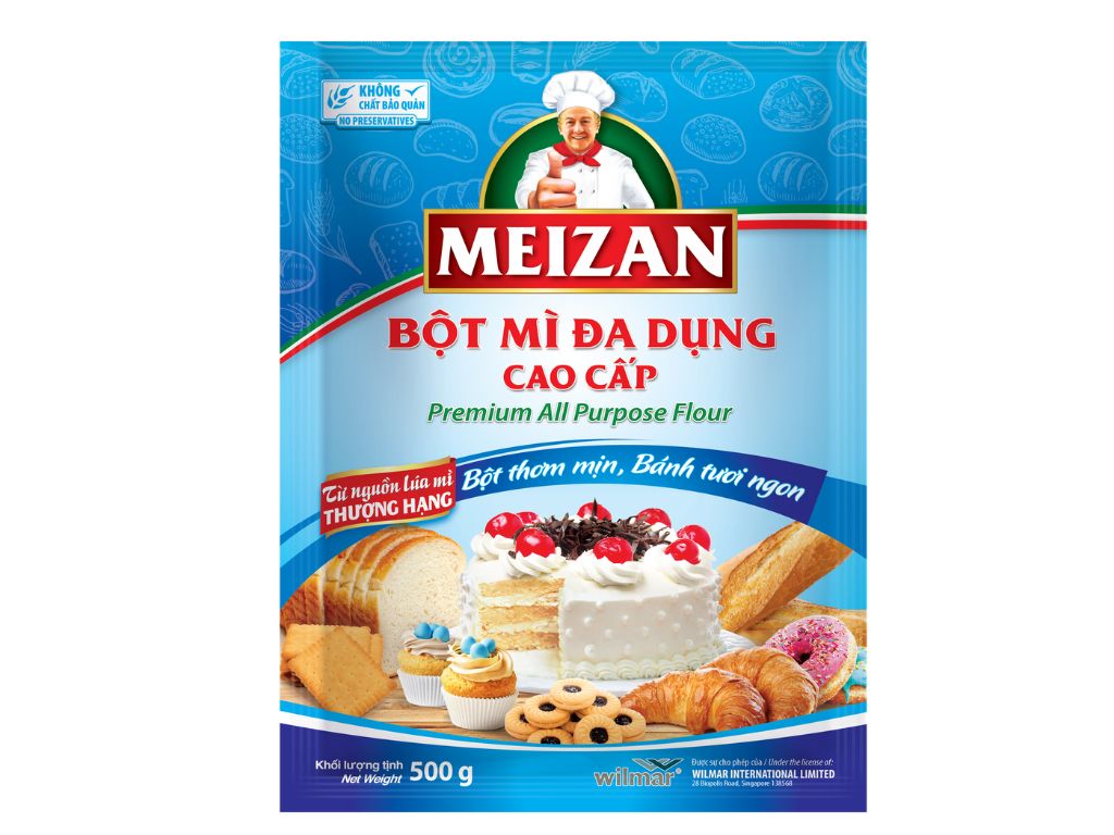ម្សៅមីគ្រប់ប្រភេទ Meizan (500g) គឺជាម្សៅមីដែលប្រើសម្រាប់ចម្អិនអាហារ និងធ្វើនំបានច្រើនប្រភេទនៅផ្ទះ។